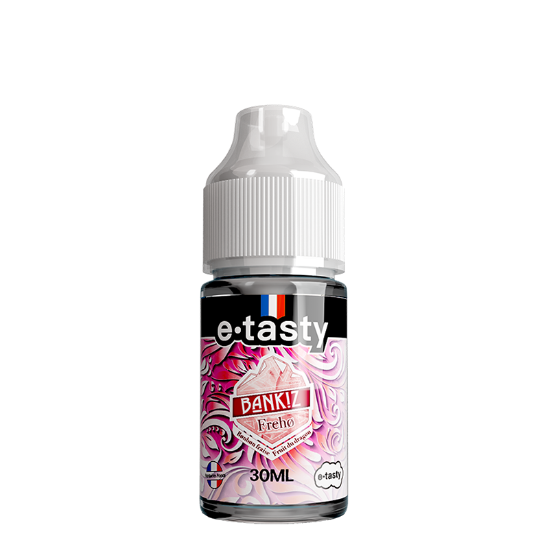 Explorez la combinaison du bonbon fraise et du fruit du dragon avec cet e-liquide de la collection Bankiz.