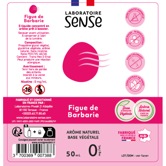 Les e-liquides Laboratoire Sense sont fabriqués à partir d’arômes 100% naturel.