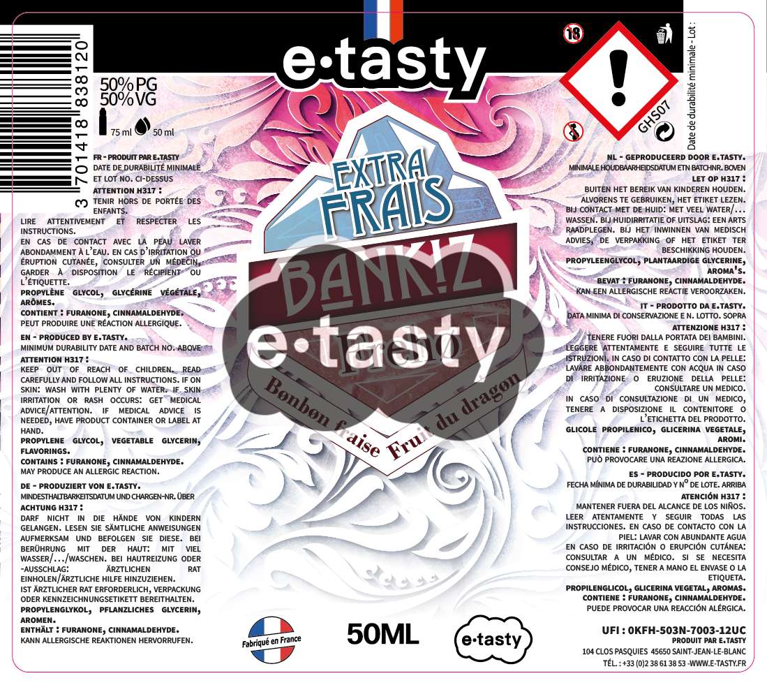 Explorez la combinaison du bonbon fraise et du fruit du dragon avec cet e-liquide de la collection Bankiz. Le goût sucré du bonbon fraise se mélange à la saveur du fruit du dragon, créant un mélange distinctif. Cette association propose un équilibre entre ces deux éléments pour un mix unique avec une fraicheur plus importante que la version originale.