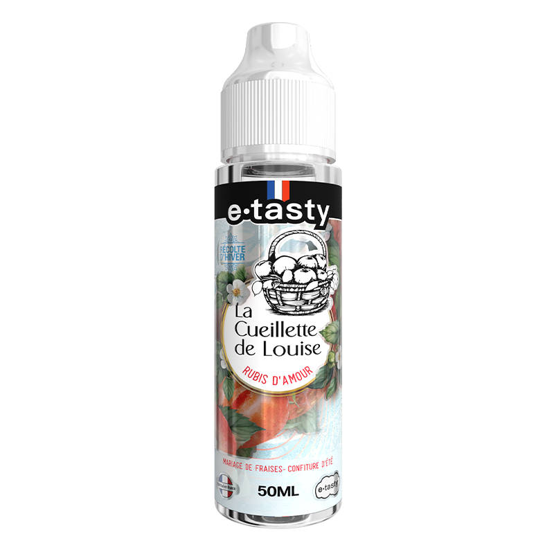 Découvrez Rubis d’Amour de la gamme La Cueillette de Louise : un mariage envoûtant de fraises fraîches et de confiture d’été, pour une vape douce et fruitée.