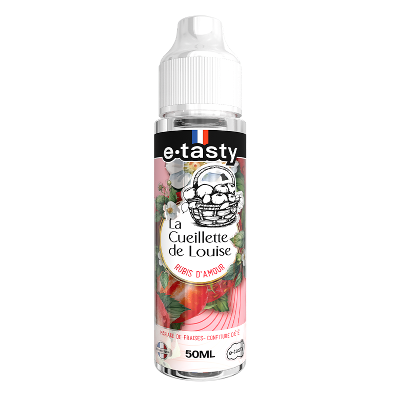 Découvrez Rubis d’Amour de la gamme La Cueillette de Louise : un mariage envoûtant de fraises fraîches et de confiture d’été, pour une vape douce et fruitée.