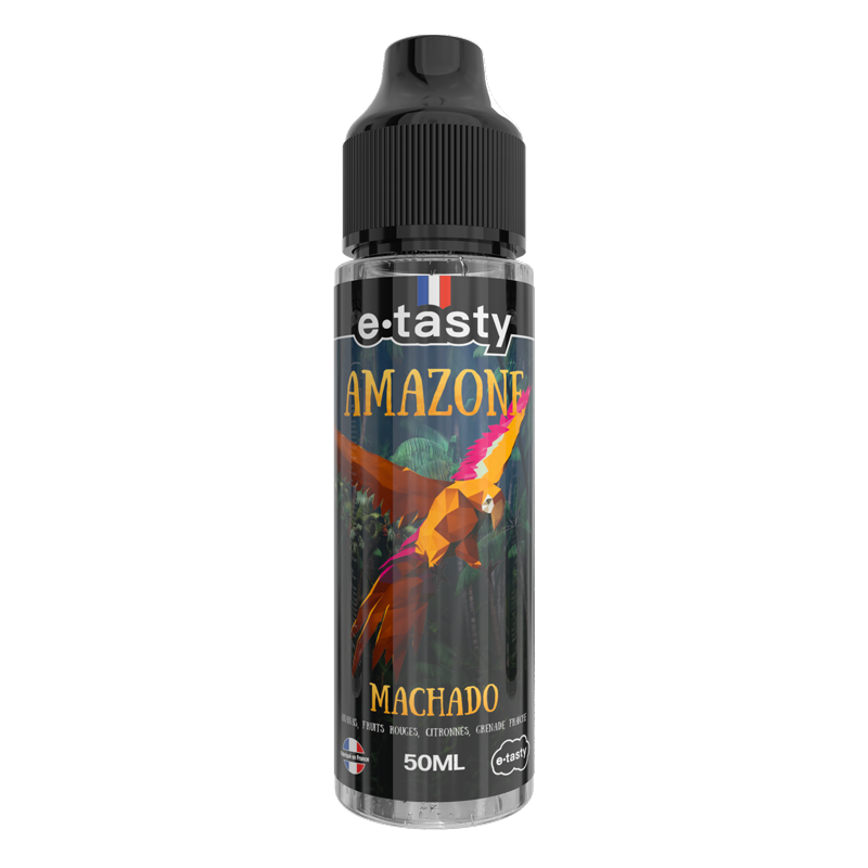 Émilien adore les e-liquides qui ont du caractère, ceux qui ne passent pas inaperçus. Un jour, en flânant sur son site préféré, il tombe sur un nom qui claque : Machado Amazone, signé e-tasty. Curieux, il teste… et là, dès la première puff : festival en bouche ! 🎉💨